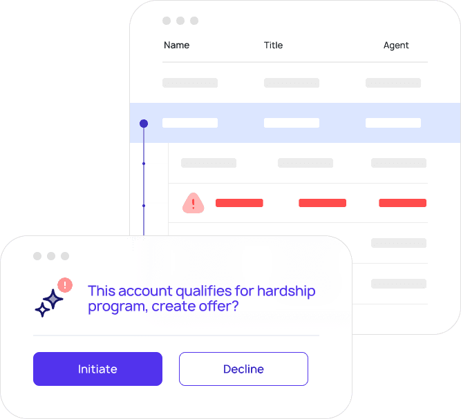 Once an agent reviews and approves, options can be quickly and easily deployed. And, by using AI to spot these opportunities to help, lenders can reduce manual queue reviews and improve the borrower experience, reducing delinquency rates while staying compliant.